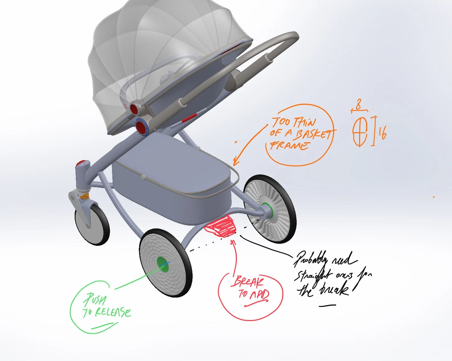 We sought a design that addresses usability challenges and shortcomings that make prams difficult to use and force families into purchasing yet more accessories.